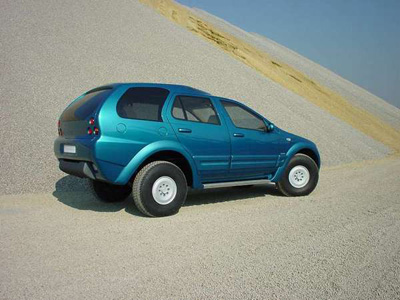 Разгон Coggiola T.Rex нельзя назвать очень быстрым, но он весьма впечатляет. Взревев при утопленной в пол педали газа, автомобиль не спеша, степенно начинает движение. Покачиваясь на неровностях, разрывая своим гигантским кузовом толщу встречного воздушного потока, машина весьма быстро развивает 100 км/ч, а затем на автостраде стрелка спидометра подкрадывается к отметке 140 км/ч. Ощущения? Если откровенно, 140 за рулем T.Rex кажутся более сумасшедшей скоростью, чем 250 за рулем Ferrari! Разумеется, создатели автомобиля понимают, что с дизелем, даже таким большим, T.Rex не поставит рекордов по динамике, поэтому при изготовлении следующих экземпляров будет применен 5-6-литровый бензиновый V8 мощностью в 300 с лишним сил (либо от General Motors, либо даже от Mercedes-AMG)! Только все-таки инженеры Coggiola беспокоятся насчет того, как их "хаммерозавр" будет ездить на скоростях, превышающих 200 км/ч... Уже сейчас подвеска и тормоза Hummer испытывают предельные нагрузки из-за тяжести кузова, так что, вероятно, потребуется доработка шасси... Зато мягкая, "убаюкивающая" подвеска и неторопливый, однако очень тяговитый турбодизель великолепны, как только сворачиваешь с шоссе на пересеченную местность. Как и Hummer, T.Rex практически не знает преград. Шел сильный дождь, но, несмотря на это, мы упорно забирались в горы по узкой извилистой дорожке из мокрых камней и разбухшей от воды глины. Посвистывая наддувом и срубая бампером грунт там, где дорожка была слишком узкой, динозавр карабкался без малейших усилий. Хорошо, что нижняя часть бампера сделана из сверхударопрочного алюминия: при езде по горной дорожке это очень помогает.