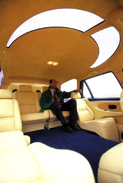 Лишь на одном особо крутом и размытом склоне мы воспользовались понижающей передачей. Шасси Hummer презирает любое бездорожье. Кстати, из-за того, что T.Rex базируется на механике Hummer, у него нет пижонских литых дисков. Пластиковые колпаки скрывают оригинальные штампованные колеса Hummer, внутри которых смонтирована система дистанционного изменения давления в шинах. Это приспособление оценят первые клиенты из арабских стран, которые покупают T.Rex для беззаботных путешествий по пустыням. А еще у T.Rex фантастический дорожный просвет (как у Hummer - 400 мм!) и огромные ходы независимой подвески, поэтому вывесить колесо на бездорожье чрезвычайно затруднительно. На пересеченной местности T.Rex практически непобедим: тяговитый мотор позволяет машине выбираться из ловушек, а огромная масса - на скорости просто сметать незначительные препятствия на своем пути. Конечно, как и любой большой внедорожник, автомобиль "козлит" на серьезных препятствиях, но в целом уровень комфорта на борту высокий, если не считать иногда излишне громкого басовитого голоса мотора. Для компании Coggiola T.Rex играет не только пропагандистскую роль - это не только шоу-кар для популяризации имени фирмы и объект для занесения в мировые анналы в качестве самого большого "легкового" автомобиля, но и предмет для развития бизнеса. Итальянцы заказали у AM General шасси Hummer для последующих вариаций на тему T.Rex.