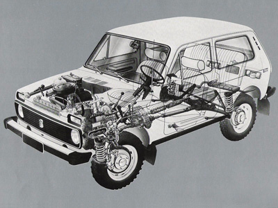 "Нива" - автомобиль повышенной проходимости с постоянным неотключаемым приводом всех колес (у внедорожников до "Нивы" такой был только у "Рейндж Ровера") с межосевым блокируемым дифференциалом и раздаточной коробкой с понижающим рядом. Автомобиль обладал очень прогрессивной конструкцией, сочетавшей отличные внедорожные качества с комфортом легкового автомобиля, и практически не имел на то время аналогов. Успешно экспортировался во многие страны. Автомобиль стал одним из первых представителей так популярных сейчас "паркетных" внедорожников.
